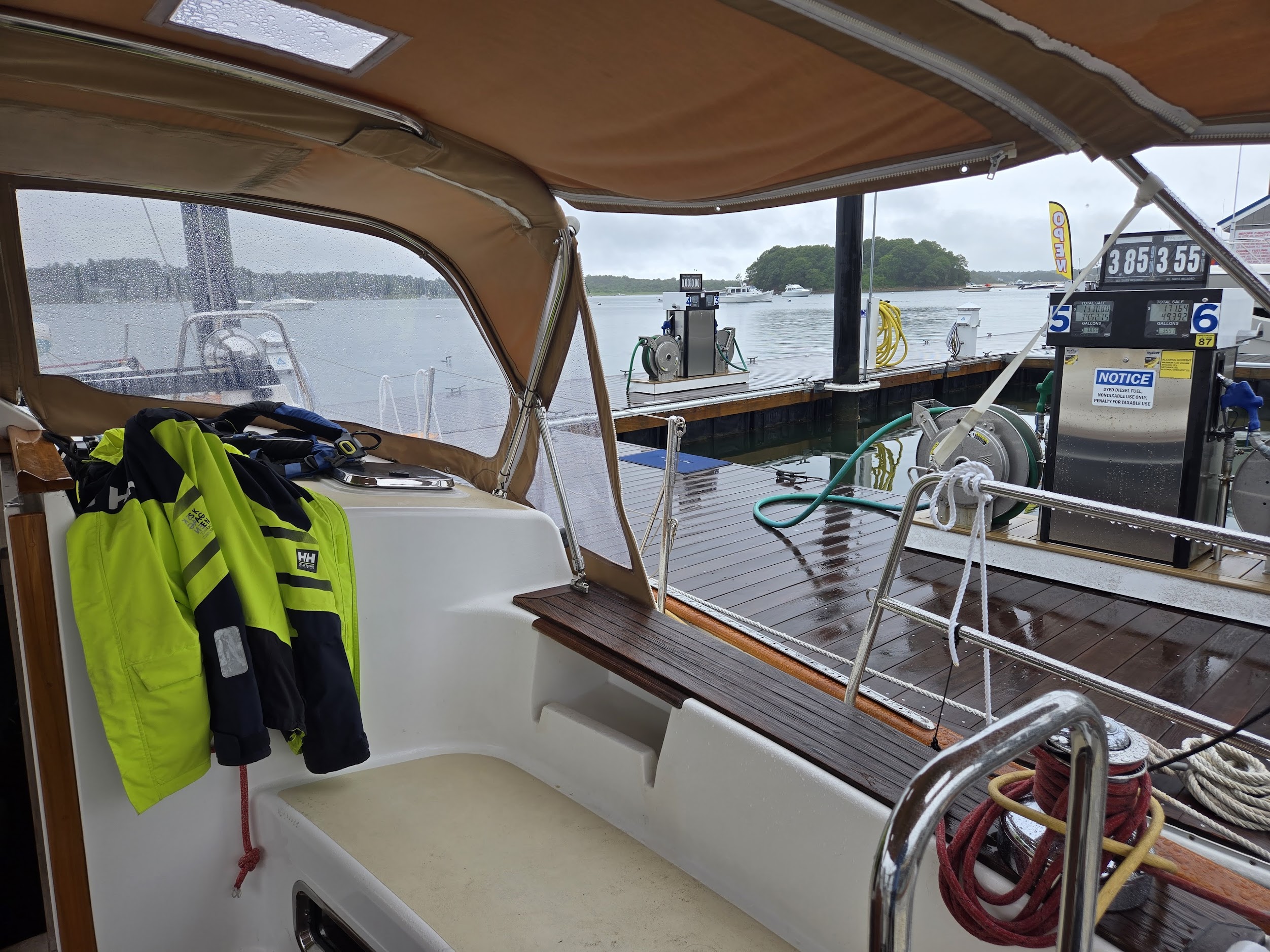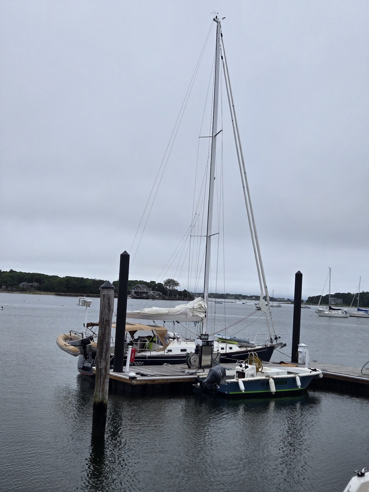 Finally, we were going to be on a dock which was welcome after the wet day we had sailing out of provincetown. Safe Harbor, Onset only had availability for us on the 12th so we planned on just anchoring the first night and moving to our slip. Fortunately, the weather was so crappy that they were nice enough to let us land on the fuel dock the first night. We’re safe harbor members, so the dockage was free here.