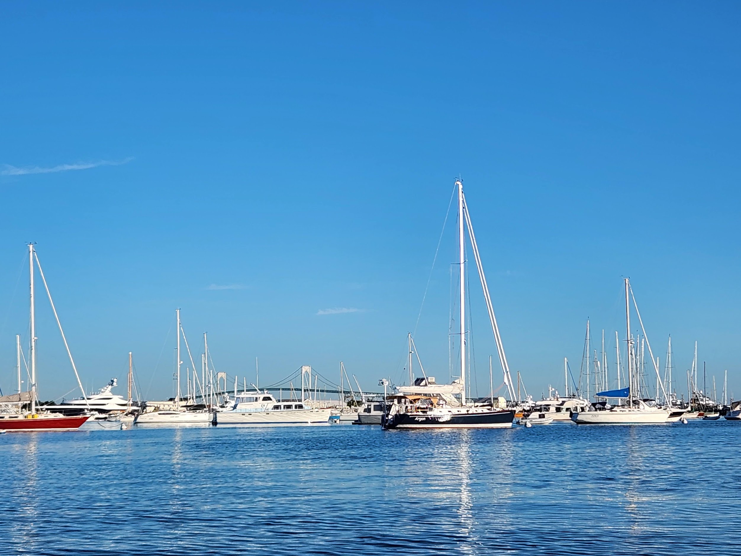 We intended to stay just two nights (one night on an oldport mooring and the next on a friend’s private mooring). But then I heard from a childhood friend who was traveling through the area and wanted to meet for lunch in Newport. So back to oldport again for a third night. There are worst places to be trapped.