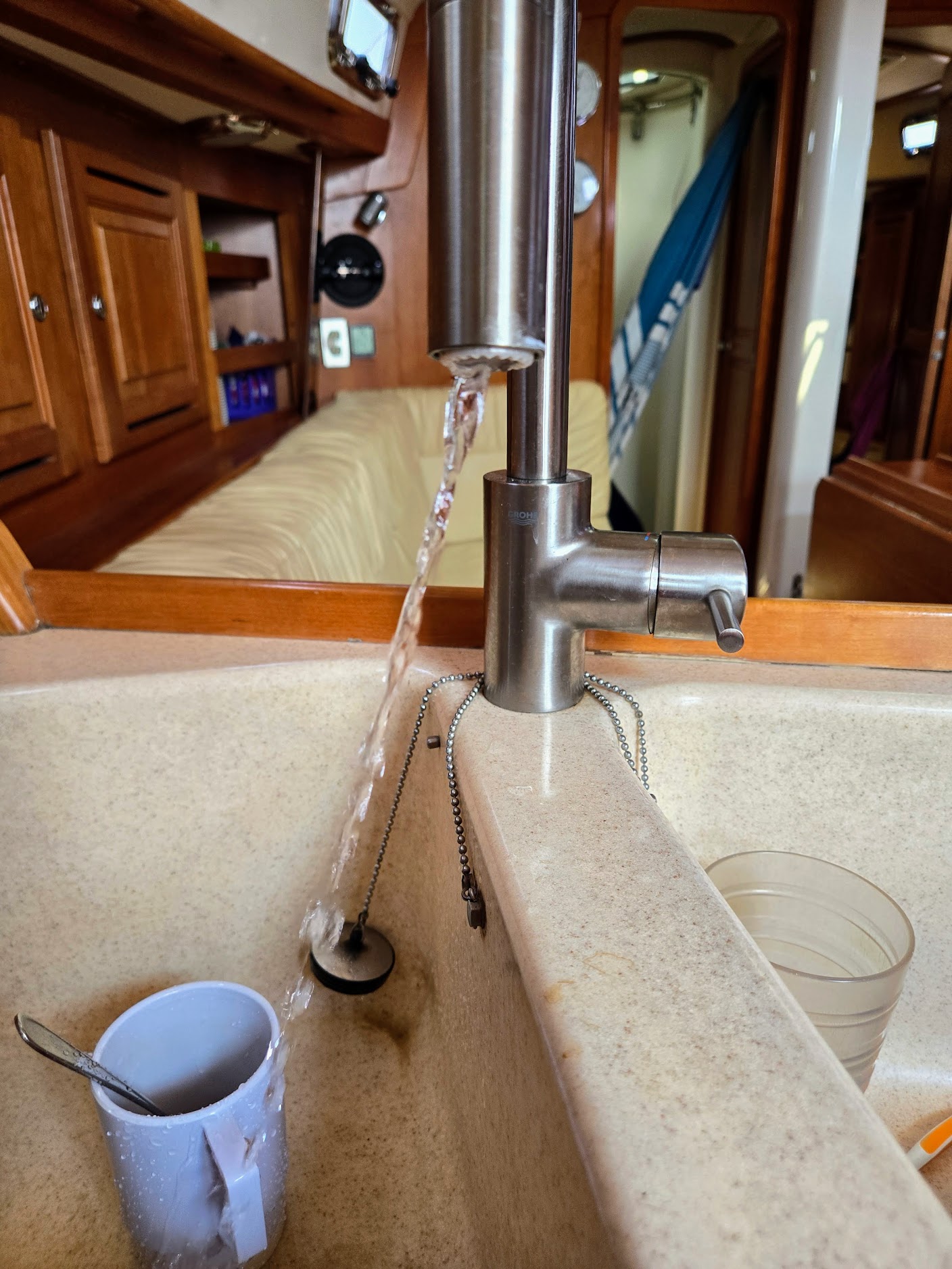 Testing – so we ran the engine for a bit (we were low on hot water and electrons anyway) and there were no alarms. Eventually when we left ptown, we had no issues motoring out of the moo