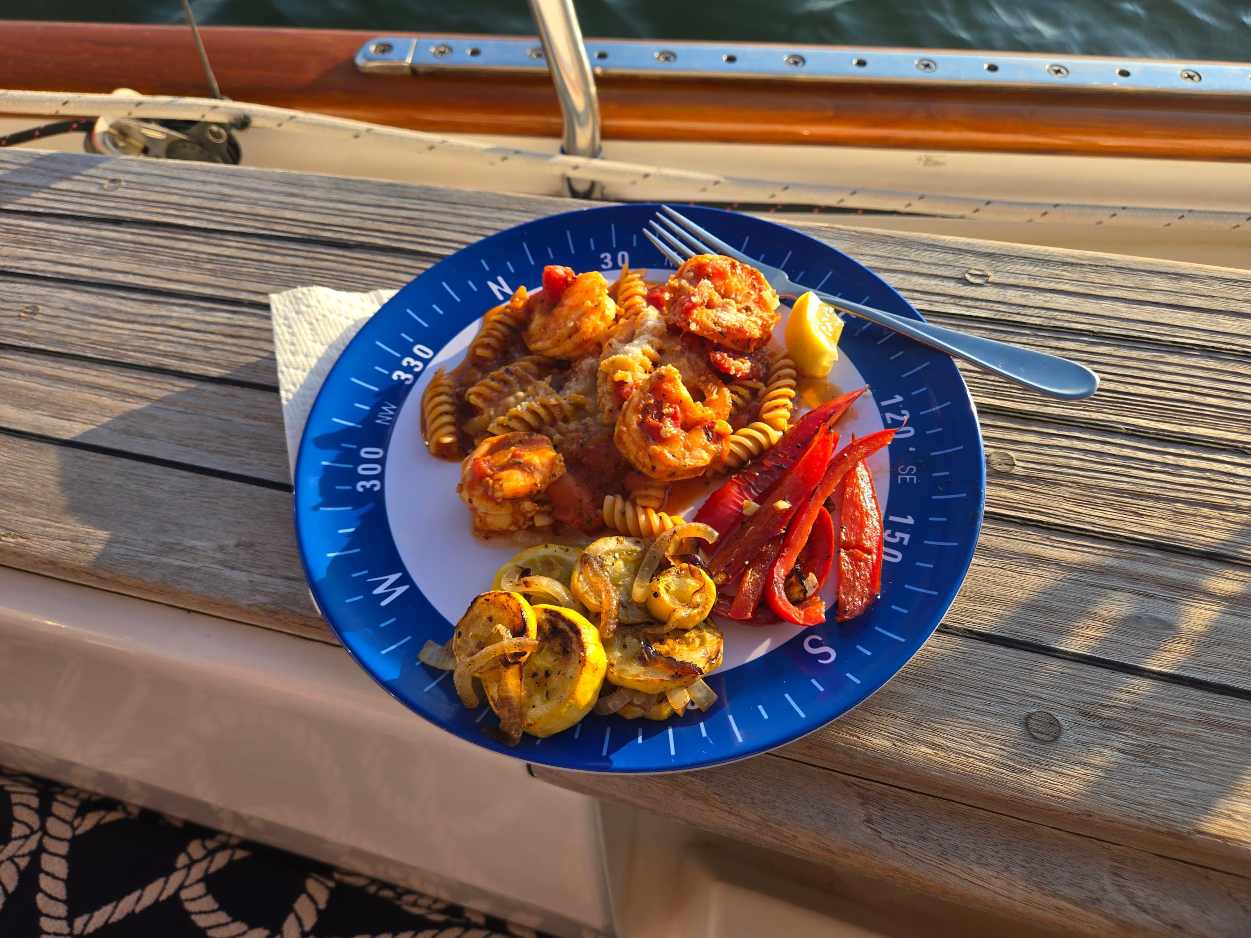 There was a good ol’ fashioned New England squall with winds hitting high 30s and turning us toward the north-northwest. That exposed the whole anchorage to a long fetch from the sound and things were a bit exciting for a while. We put out another 20 feet of chain just in case and monitored or swing carefully.