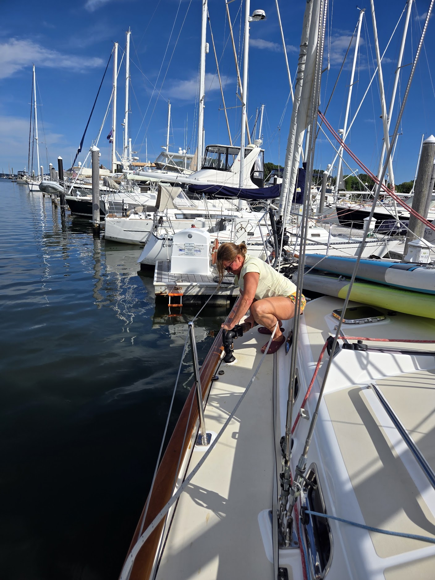 Day jobs the next morning at the mooring but then back to the dock (via the pumpout dock)