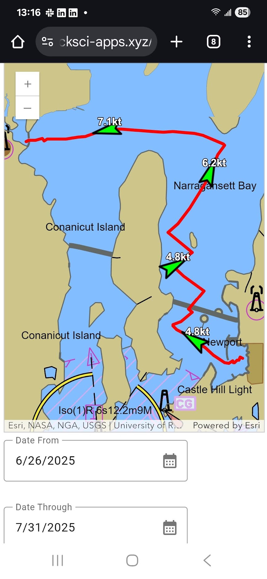 Route:Wickford Cove → Potters Cove Jamestown, RI