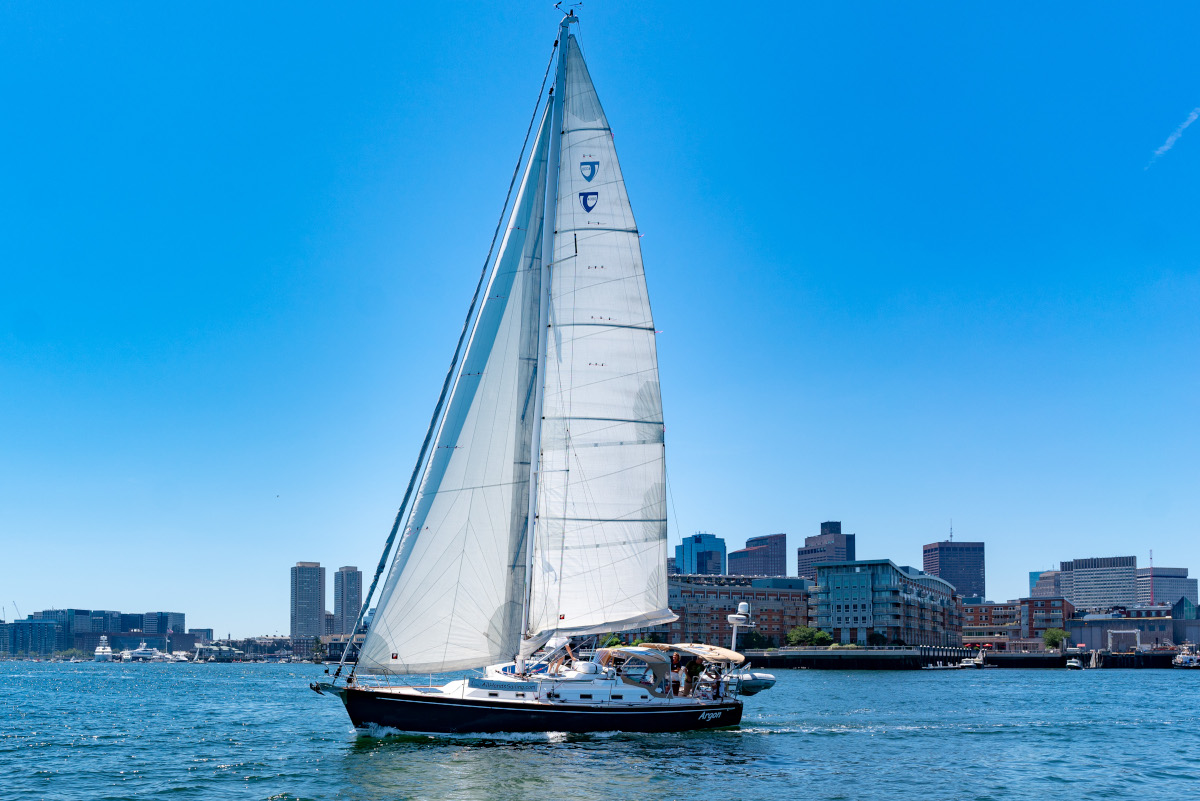 Because Argon is a modern keelboat, she handles wind and waves beautifully—even when sailing with a bit of dramatic flair. The deep keel also contributes to her ability to sail upwind efficiently.